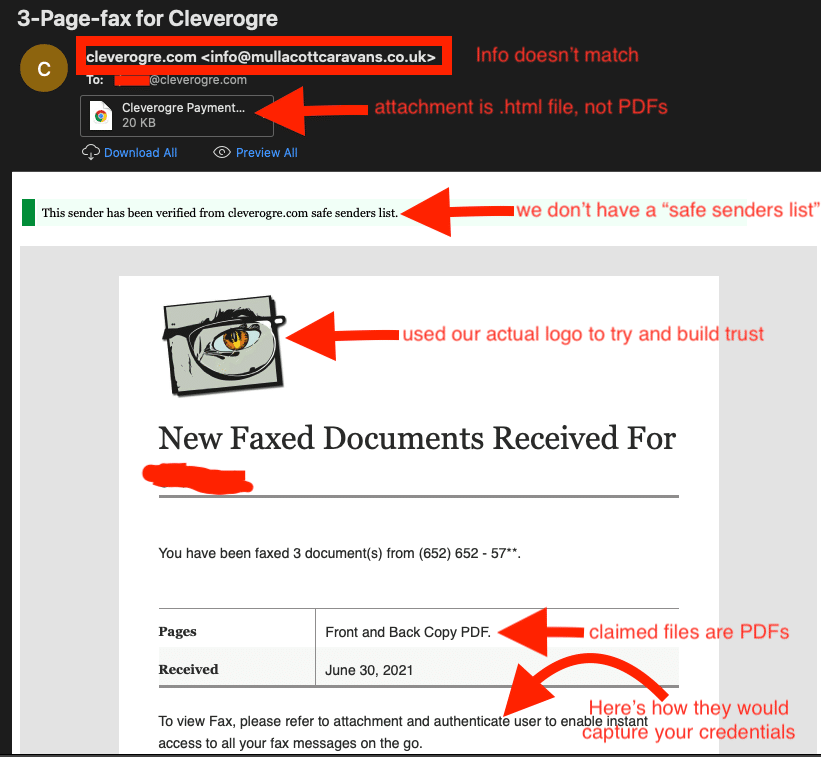 We did, once upon a time, utilize a fax machine for sending and receiving documents — but that was long ago. While this wasn’t the most convincing scam attempt we saw this month, it did get a chuckle out of the Ogres.